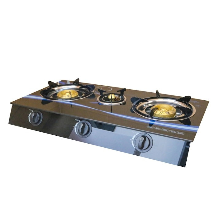 Aragaz cu Plită din Sticlă Securizată 3 Ochuri – Aprindere Quartz, GPL Butelie