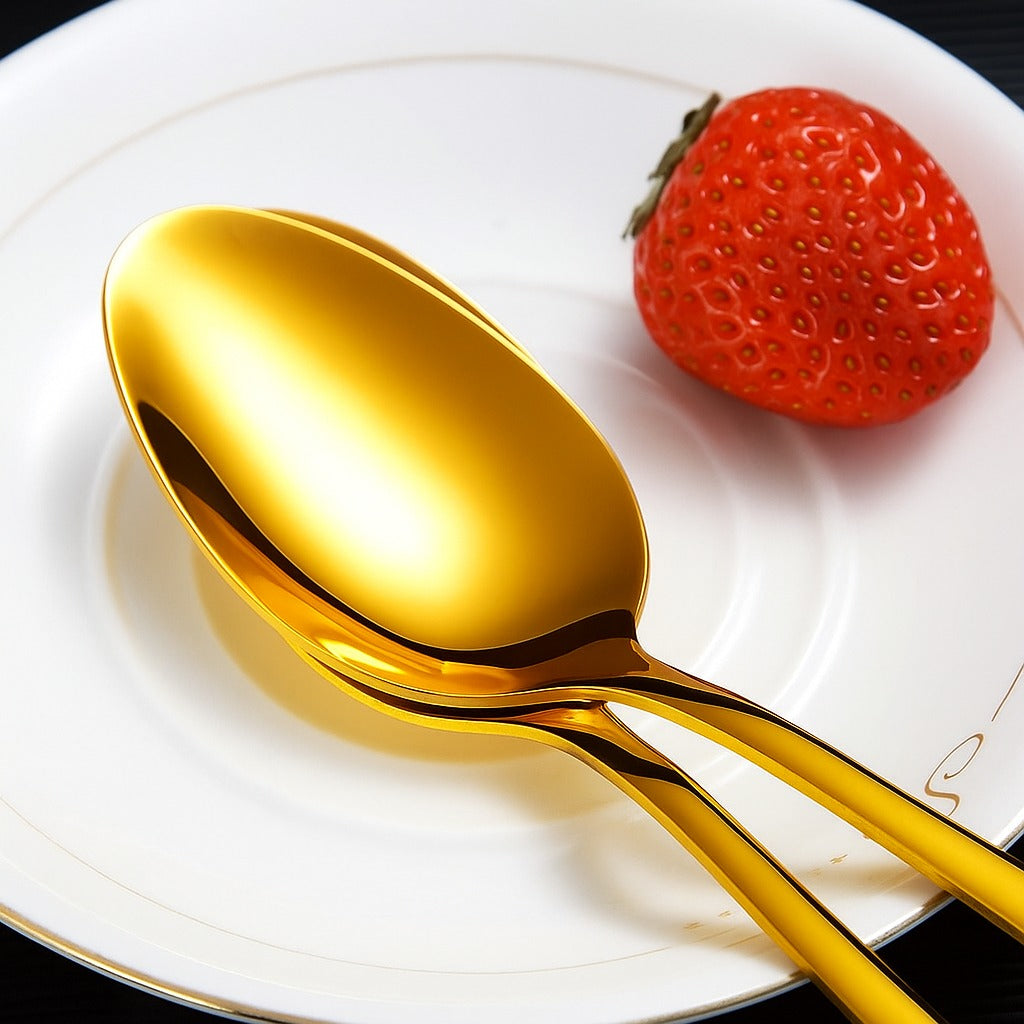 Set Tacâmuri 24 Piese din Oțel Inoxidabil – Design Elegant, Auriu, cu Cutie Cadou