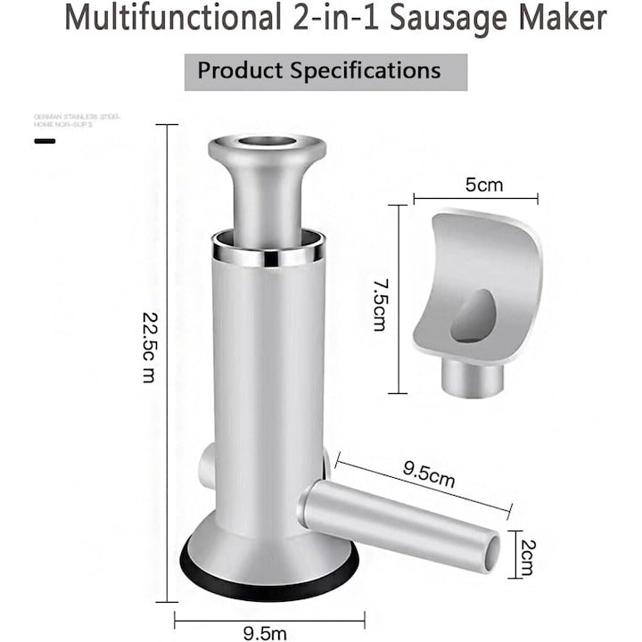 Prepară ușor și rapid cârnați de casă sau chifteluțe delicioase cu această mașină manuală multifuncțională! Ideală pentru gospodine, pasionați de gătit sau pentru cei care doresc să aibă control total asupra ingredientelor. Simplu de folosit, ușor de curățat și foarte practică în orice bucătărie. 👩🍳