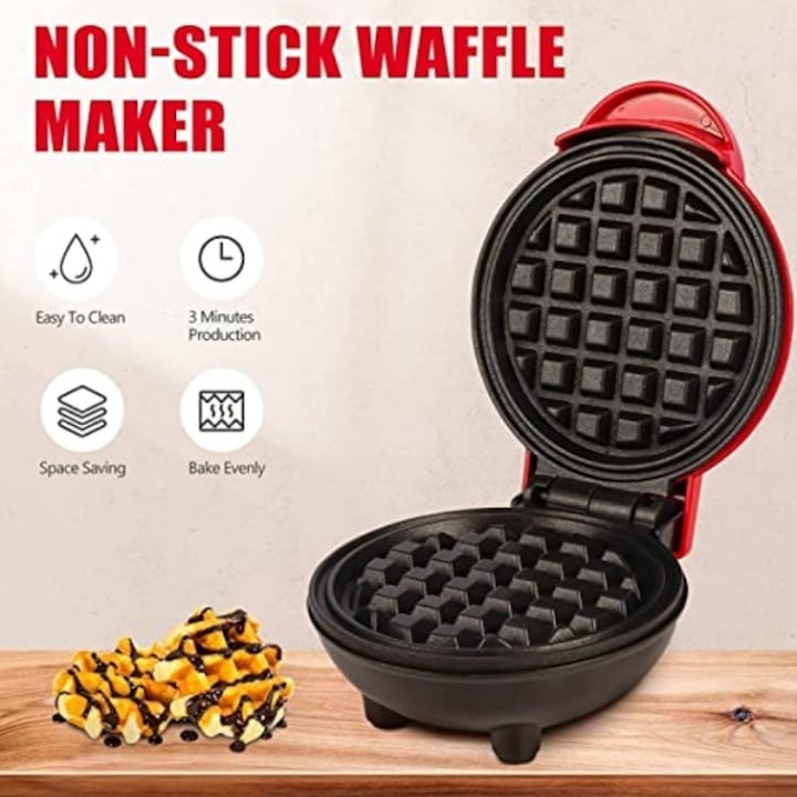 Mini aparat de făcut vafe/gofre – înveliș antiaderent, protecție supraîncălzire, indicator luminos