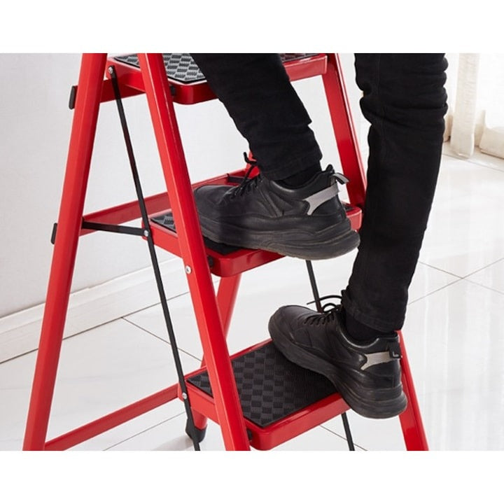 Scară Profesională Pliabilă 4 Trepte KlaussTech din Metal Rezistent Roșu/Negru