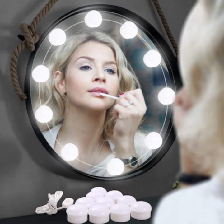 Transformă-ți colțul de frumusețe într-un adevărat studio profesionist cu acest set de 10 becuri LED pentru oglindă, cu intensitate și culoare reglabile! Ideal pentru machiaj, selfie-uri, vlogging sau pur și simplu ca decor elegant pentru baie, dormitor sau masă de toaletă.