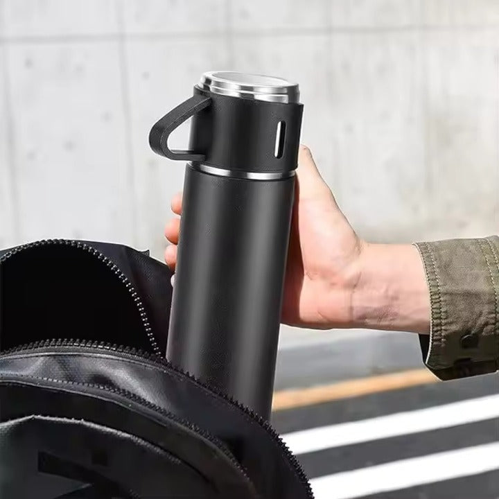 🔥 Set Cadou Termos cu 3 Cești – 500 ml, Negru, Închidere Ermetică, Oțel Inoxidabil, Ambalaj Premium ☕🚗