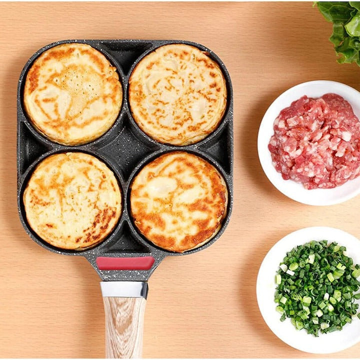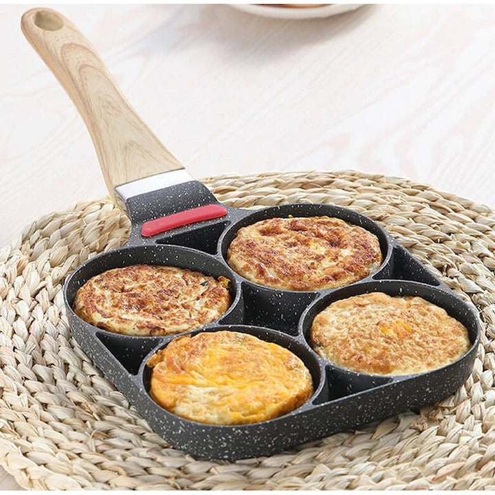 💡 Cu această tigaie antiaderentă cu 4 compartimente, gătitul devine simplu, organizat și distractiv! Pregătește mese perfecte pentru toată familia dintr-o singură mișcare! 🍽️